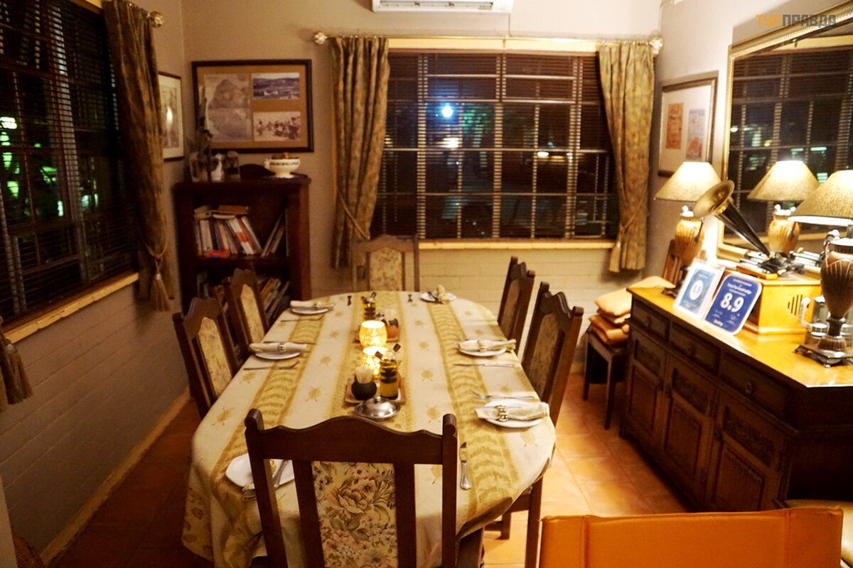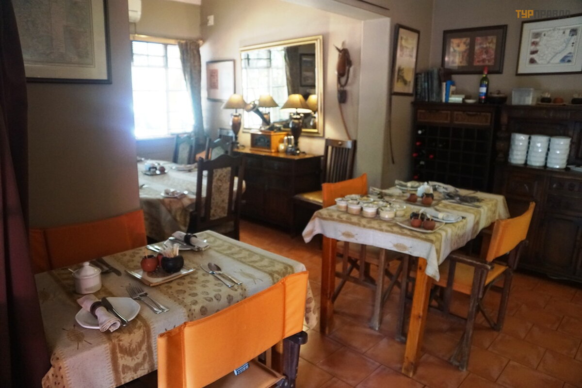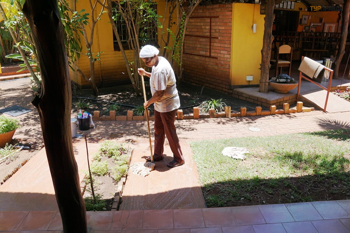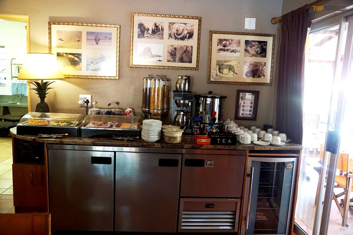 Prie vartų mane pasitiko baltoji vieš buč io š eimininkė . O, suš uko ji, o aš jau norė jau eiti susitikti, nors paraš iau jai, kada atvyksiu. Pirmiausia ji papasakojo apie gyvenimo taisykles. Kai jos kavinė dirba, kiek apytiksliai kainuoja pusryč iai ir vakarienė . Ji aprodė teritoriją ir apsigyveno mano kambaryje, atskirame name, stovė jo pavė syje. Man viskas patiko, kaina irgi, bet galė tų bū ti ir pigiau, nes vanduo baseine drumstas ir lapuose. Aš už sisakiau vieš buč ius Afrikoje per Booking. com iš Novorosijsko. Ten nuotraukoje matote vieną dalyką , o č ia matote tikrą jį . Brangu, bet visko yra. Vakare mane paleido vakarienei ž vakių š viesoje. Viskas buvo graž u ir skaniai kvepė jo. Kai buvo patiektas maistas už.100 ZAR, supratau, kad produktai iš prekybos centro – ne pirmas š viež umas.