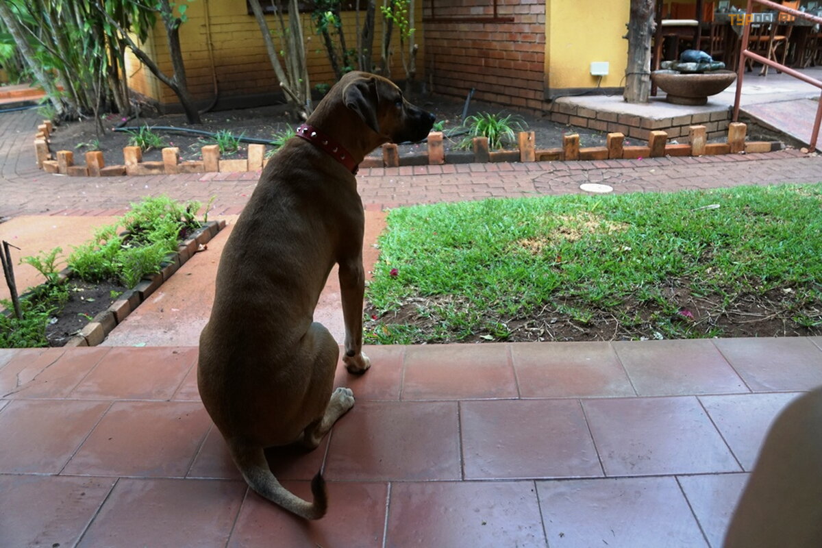 Tada jie į eina į vieš buč io kavinę tiesiai į virtuvę , kur tamsiaodž iai virė jai pavaiš ina juos š viež ia viš tiena ir visu kitu ką tik pagamintu maistu. Gero gyvenimo ir š eimininkų š unų . Pavydž iu ne tik jiems, bet ir visam juodam vieš buč io personalui. Kai man atsibodo š ie š unų pritū pimai prieš savo kambario langą , paė miau č ili pipirus ir pabarsč iau jais visą pievelę , kur nuo š eimininko š unų pradė jo dž iū ti ž olė . Ryte, kaip visada, tiksliu laiku atbė go š unys ir pradė jo uostyti naują proskyno dalį savo kū riniams. Kai jų š nervė s į siurbė č ili pipirą , jie garsiai ž ievę puolė į namus pas š eimininkę . Než inau, ką ji ten su jais darė , bet nuo tada š unys vengia mano vejos, bijojo ją apuostyti ir ant jos tupė ti.