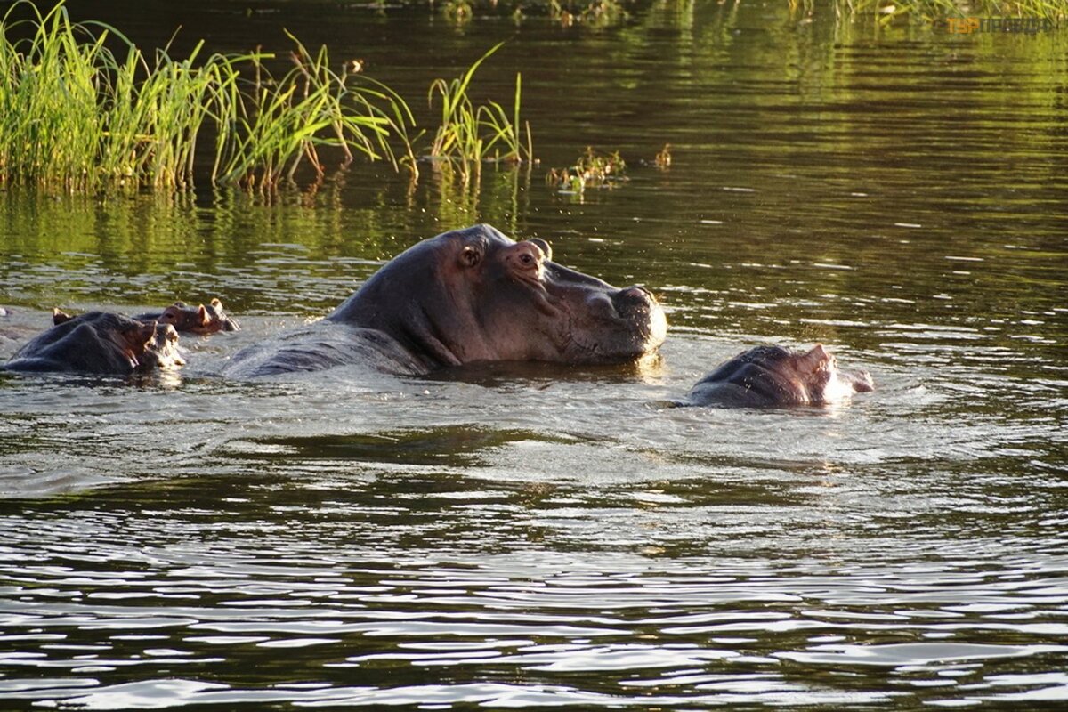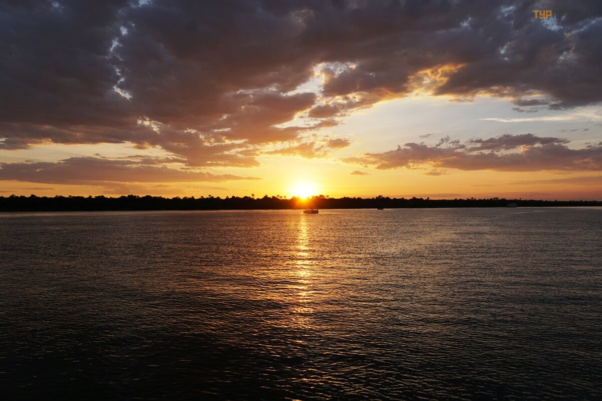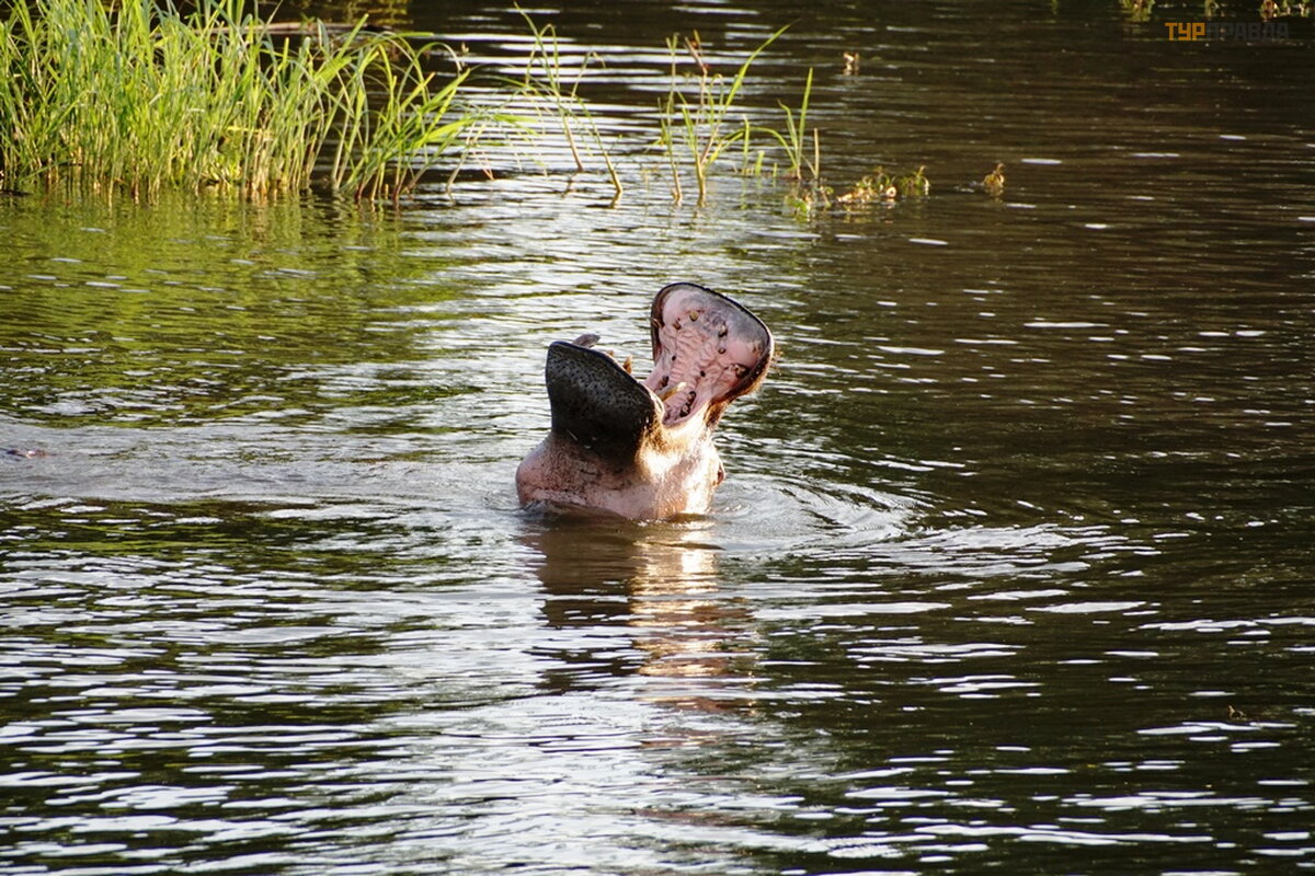 Maloniausia buvo, kai jie patiekdavo į vairiausių už kandž ių . Č ia aš paė miau savo sielą , kad juos sugerč iau. Teko iš plauti tris lė kš tes. Blyš kū s veidai nustebę ž iū rė jo į mane, kai tiek daug valgiau. Teko jiems paaiš kinti, kad reikia daug valgyti, kad neprisigertum. Kaip suprantu, begemotai č ia yra virš ininkai. Visi jų bijo, taip pat ir krokodilai. Per karš č ius taip pat norė č iau kaip begemotai visą dieną sė dė ti upė s vandenyje su viskiu, tik kad krokodilai nesimaudytų . Anksč iau, prieš.28 metus Dubajuje, apie krokodilus ž inojau, kad jie yra krepš iai moterims, batai ir dirž ai vyrams. Po valandos mū sų laivas į plaukė į Zambijos vandenis. Kaip suprantu, š nipai negali praeiti pro upę , nes sieną saugo krokodilai ir begemotai, o upė teka srauni. Kai saulė pradė jo leistis, dangus už sidegė . Grož is nepaprastas, ko gero, tai galima pamatyti tik Afrikoje.