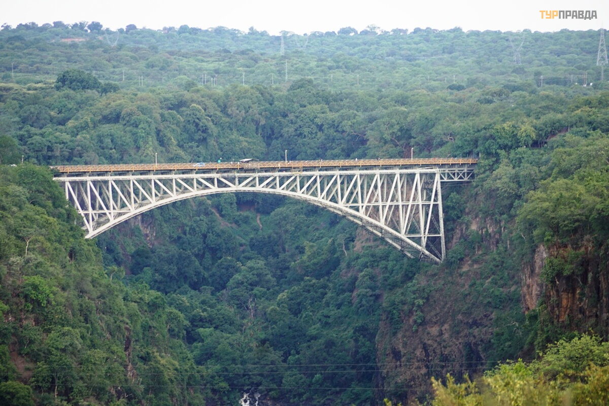 Zimbabvė s ir Zambijos pasienio tilto vaizdas
